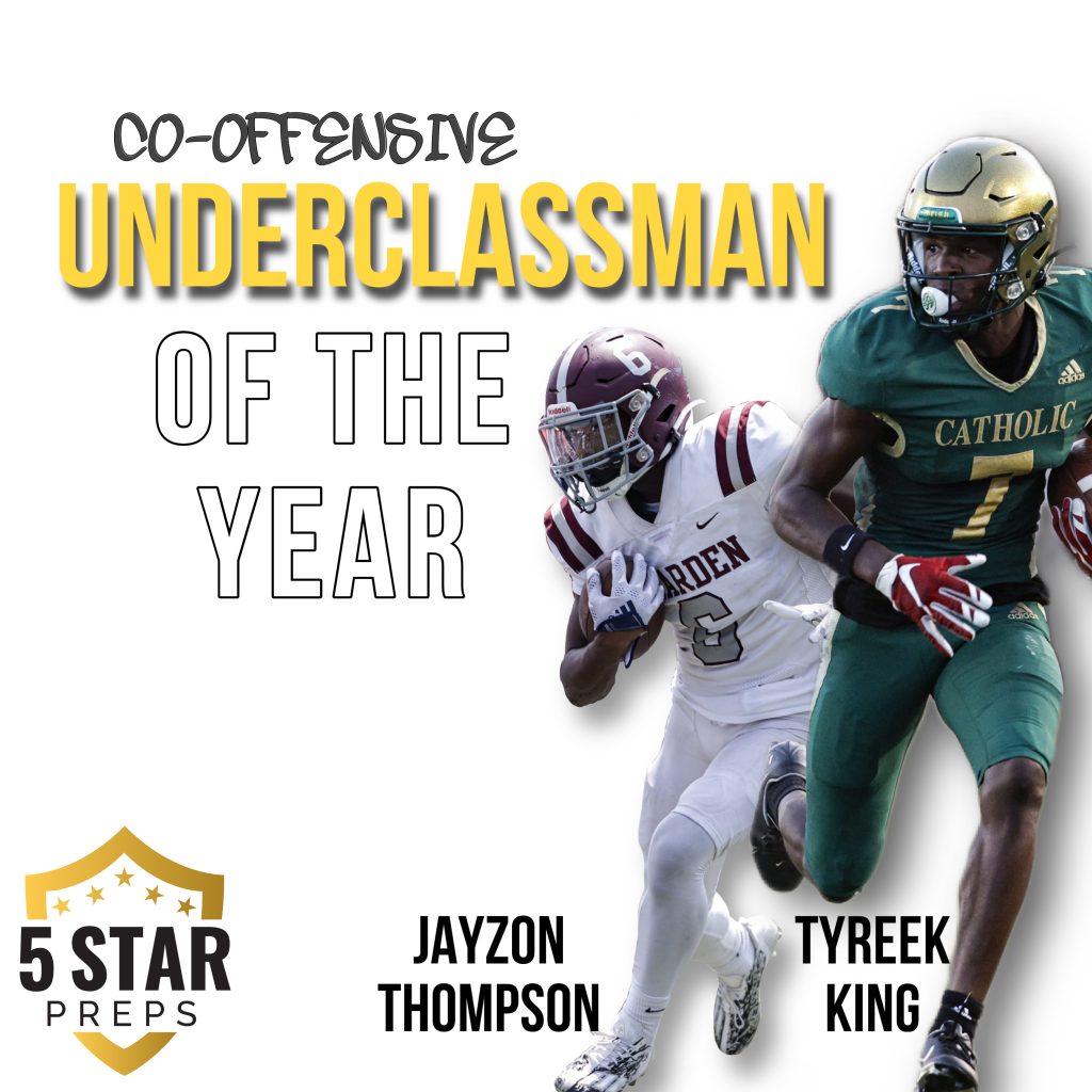 Thompson, a standout running back at Bearden, and King, the breakout wideout receiver from Catholic, share the honor of 5Star Preps Offensive Underclassman of the Year.
