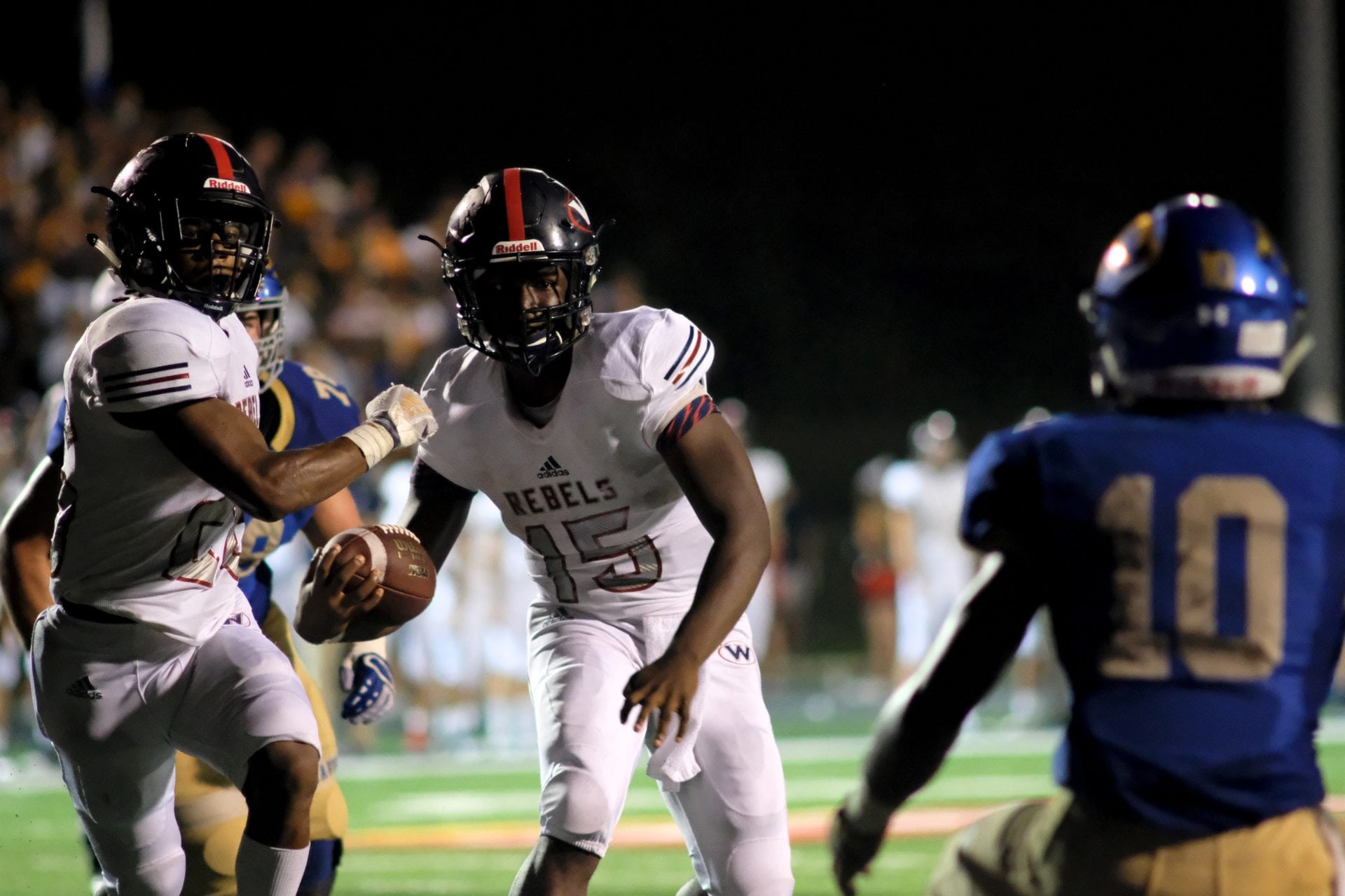 - West’s Jawaun Moore (15) scrambles to move past Karns’ Thomas Harper (10) on Friday, August 31, 2018 at Karns.